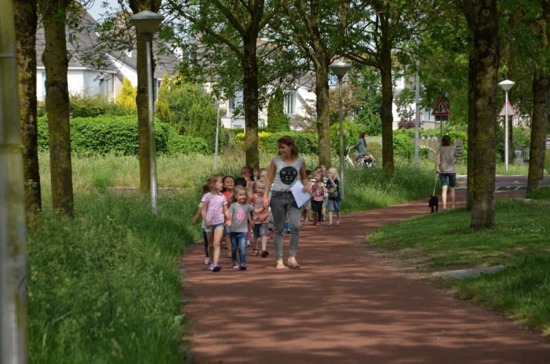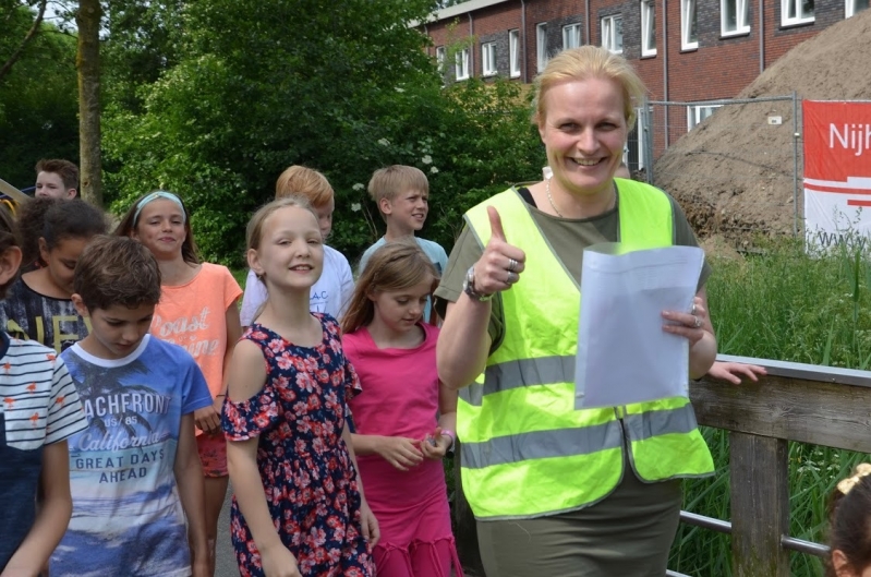 De groene kaart wordt omhooggehouden als is vastgesteld dat alle kinderen er zijn.